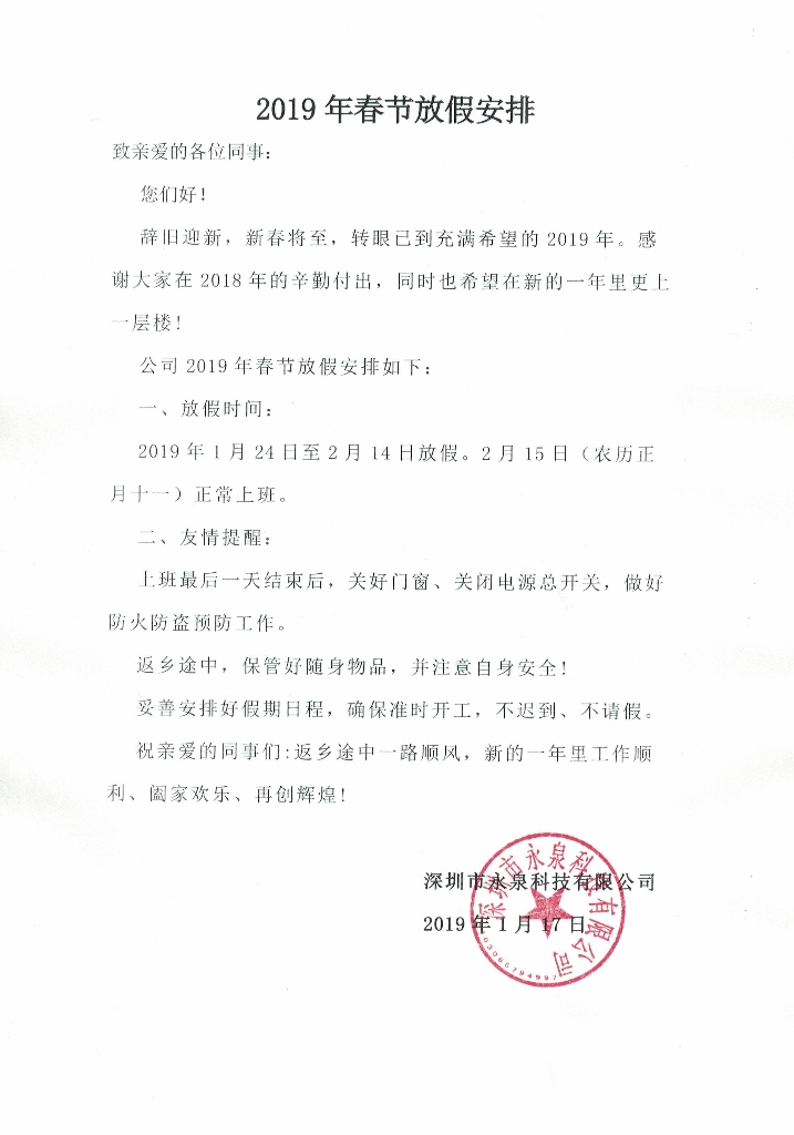 - 24-01-19 關(guān)于2024年春節(jié)放假安排的通知