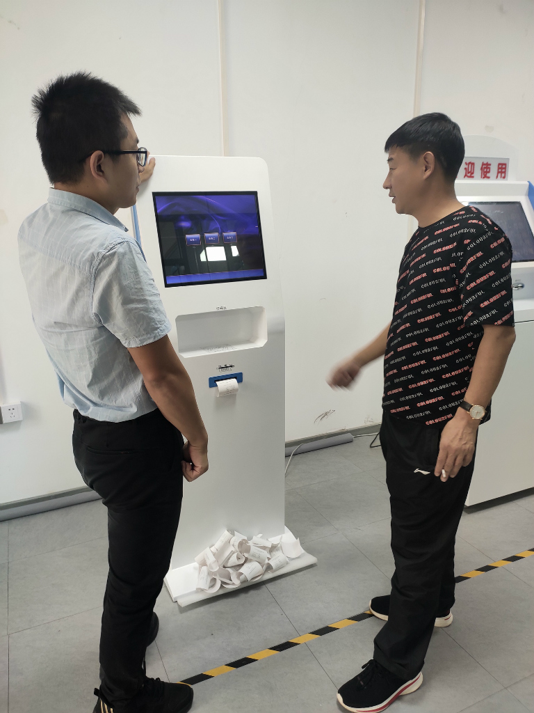 客戶千里迢迢遠道而來,就是要能找到符合需求、配合度好、服務熱情、產(chǎn)品質量好的自助終端機廠家??蛻舻男枨笫钦t(yī)院的一整套自助服務終端機(包括軟件)??蛻粼谂c我司負責該項目的領導人交談的非常融洽,甚是滿意!客戶所提的要求和疑問,我司都能夠非常積極配合解答出來,一起探討方案等。我們還進行了現(xiàn)場演示,讓客戶更加直觀清楚的了解到各個功能以及軟件系統(tǒng)。感謝客戶朋友對永泉的信任與支持,希望我們能更深的進行合作,共同發(fā)展。
